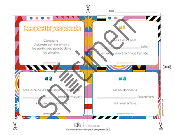 L’élève lit les phrases sur les cartes à tâches et accorde correctement les participes passés.