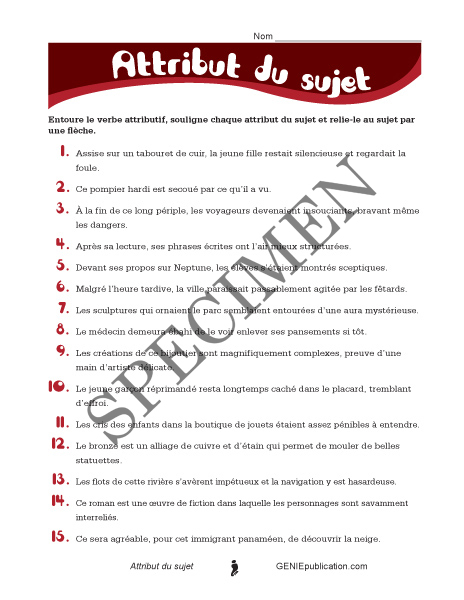 Dans cette activité, l'élève entoure le verbe attributif, souligne chaque attribut du sujet et le relie au sujet par une flèche.