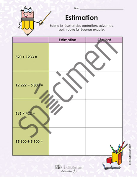 L'élève doit estimer des résultats, puis trouver la réponse.