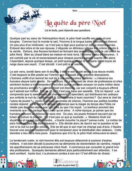 L’élève doit lire un texte et répondre à des questions. Il doit également réécrire la fin de l’histoire.