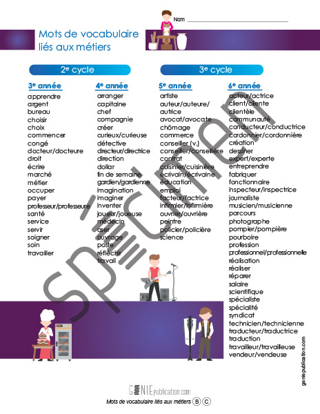 Ce document est une liste de mots de vocabulaire liés aux métiers et est inspiré de la liste orthographique du ministère de l’Éducation et de l’Enseignement supérieur.