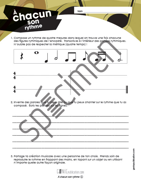 L'élève doit composer un rythme en respectant certaines contraintes.