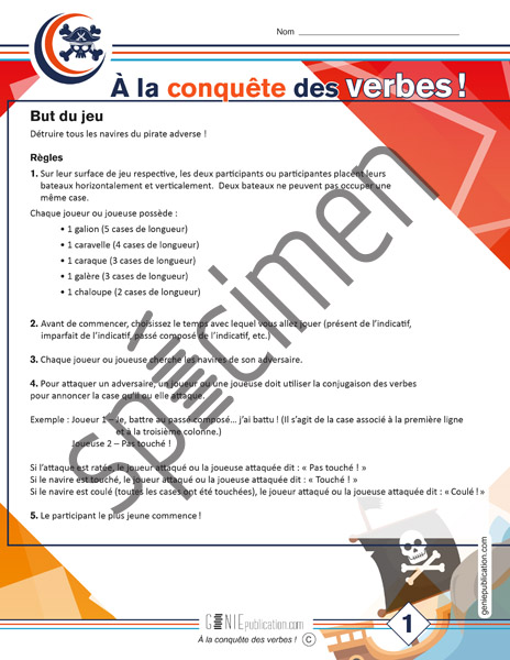 Activité sur la conjugaison des verbes sous la forme du jeu « Touché Coulé ».