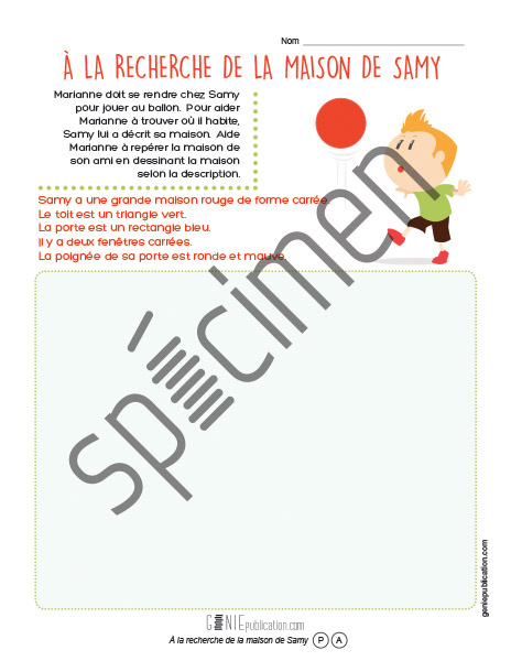 L'élève doit compléter un dessin en fonction du texte lu ou entendu.
