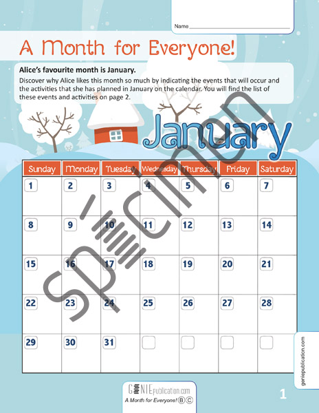 L'élève doit lire une liste d'activités et d’événements et le placer visuellement dans un calendrier.
