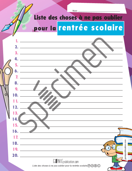 Liste de choses à ne pas oublier pour la rentrée scolaire.