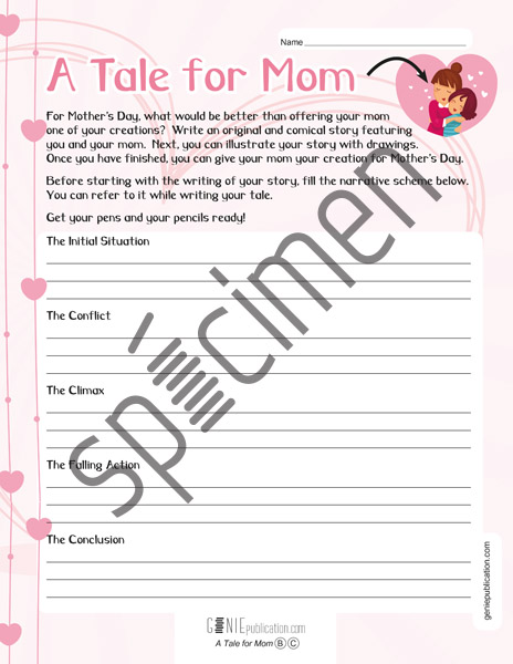 L'élève doit composer une histoire ludique dont sa mère est le personnage principal. Il peut accompagner sa création de dessins.