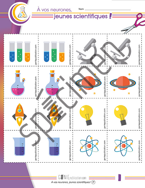 Jeu de mémoire avec des objets scientifiques.