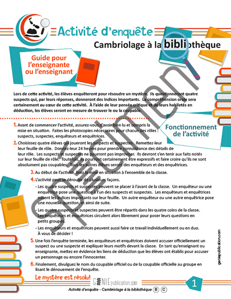 Jeu éducatif sur le thème de l’enquête, où tous les élèves de la classe sont sollicités. Les élèves devront faire preuve de logique et de déduction tout au long de l’activité. Ils auront l’occasion d’exercer leurs compétences à l’oral.