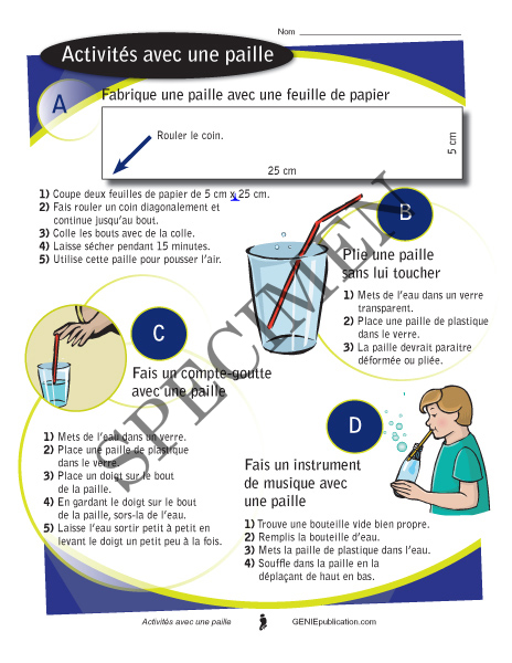 Pour les petits scientifiques de maternelle et de première année, voici quatre petites activités à faire avec une paille, de l'eau et un contenant.