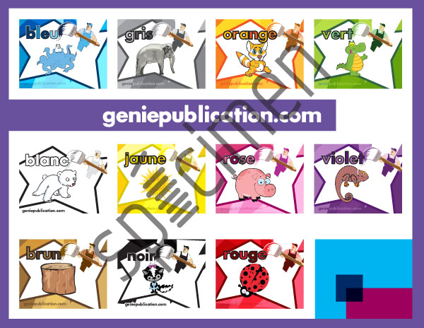 Comprend 1 affiche avec toutes les couleurs, 11 affiches individuelles (une par couleur) ainsi qu'une version en noir et blanc parfaite pour laisser l'élève ajouter lui-même la couleur.