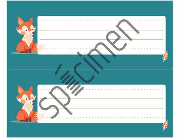 Quatre modèles d’affiches de nom pour les pupitres sous la thématique des renards.