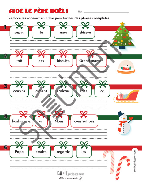 L’élève replace les cadeaux dans le bon ordre pour former des phrases.