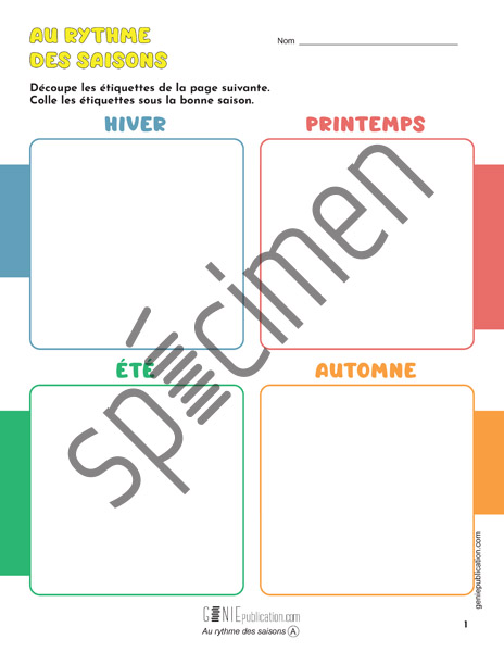 L’élève doit associer les mots, les phrases ou les dessins à la bonne saison.