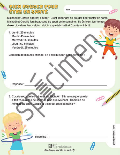 L’élève doit calculer le nombre de minutes d’exercice notées dans un calepin.