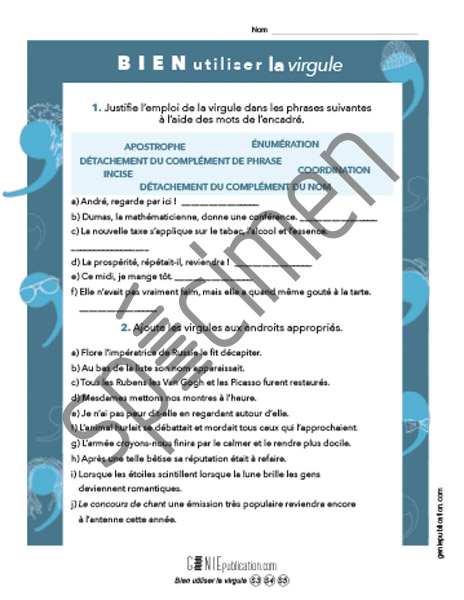 Exercice sur l'utilisation de la virgule.