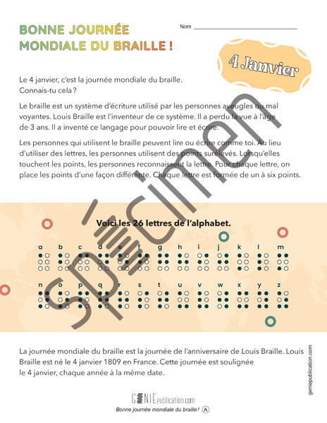 L’élève doit lire un texte qui parle du système d’écriture braille, puis répondre à des questions.