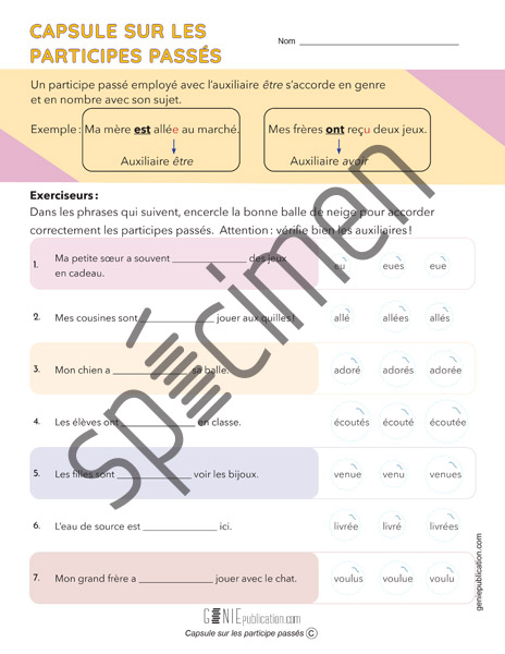 L’élève lit une capsule sur l’accord du participe passé employé avec l’auxiliaire être et doit accorder correctement les participes passés dans les phrases.
