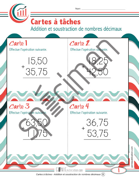 Cartes à tâches – Addition et soustraction de nombres décimaux