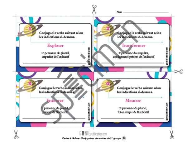 Cartes à tâches – Conjugaison des verbes du 1ᵉʳ groupe