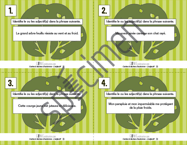 Cartes à tâches d'automne – L'adjectif