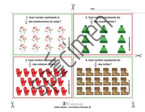 Cartes à tâches – Les fractions hivernales