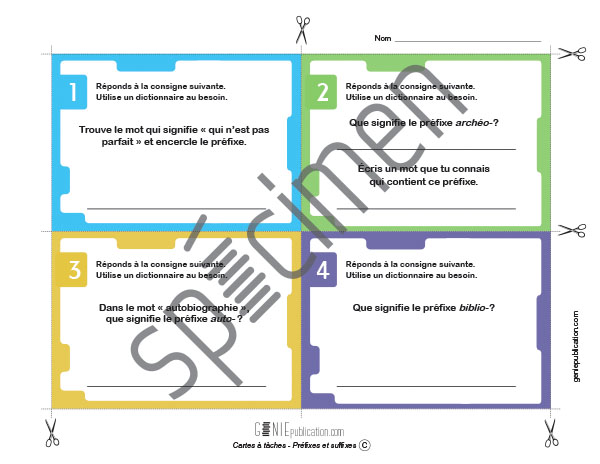Ce document contient 40 cartes à tâches portant sur les préfixes et les suffixes.