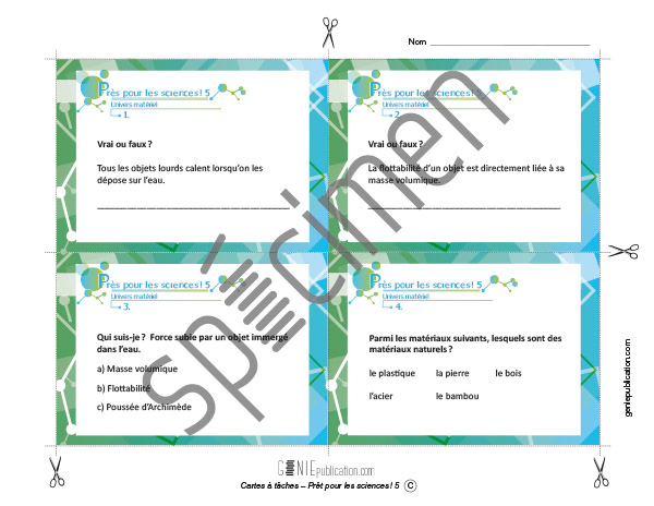 Cet ensemble contient 52 cartes à tâches. Elles sont basées sur la matière présentée dans Prêt pour les sciences ! 5 et conçues pour réviser les notions qui y sont présentées.
