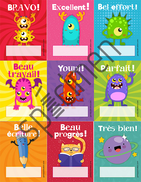 Ensemble de 9 petites cartes pour féliciter les élèves.