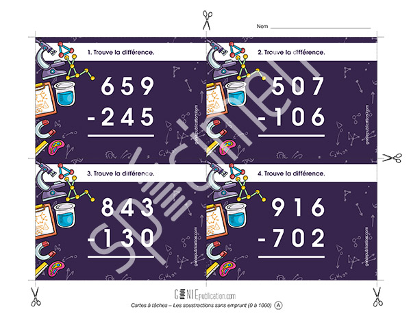 Cartes à tâches - Les soustractions sans emprunt (0 à 1000)
