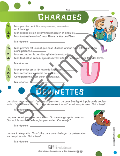Courtes charades et devinettes sur le thème de la fête des pères.