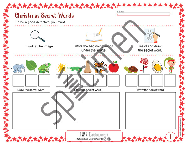 Students need to look at the image, write the beginning sound under the image and finally read and draw the secret word.