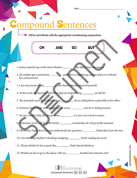 L'élève doit choisir la conjonction de coordination appropriée (coordinating conjunction) pour relier deux phrases selon le sens qui les unit.