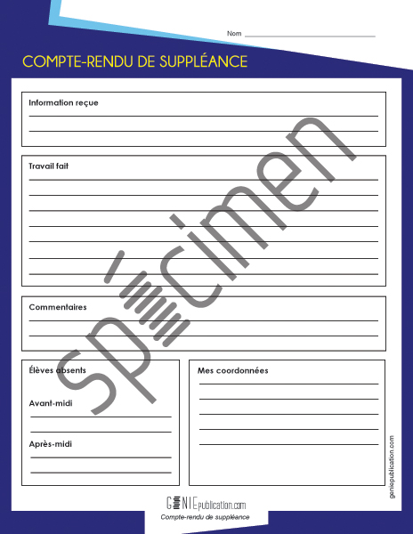 Cette fiche de compte-rendu s'adresse aux enseignantes et aux enseignants qui font de la suppléance.
