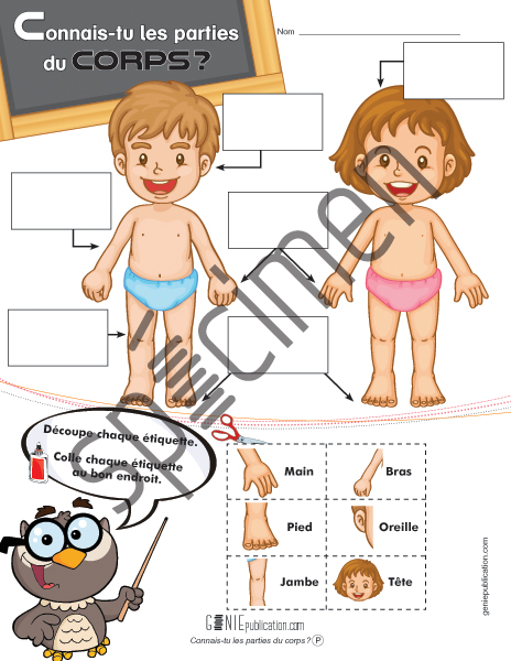 L'élève doit associer les parties du corps aux bons endroits sur le dessin.