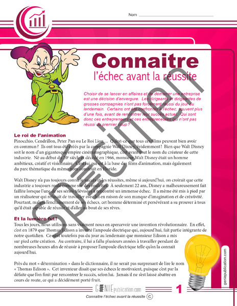 Compréhension de texte portant sur Walt Disney, Thomas Edison, J.K. Rowling et Henry Ford.