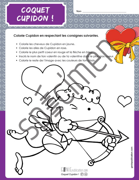 L'élève doit colorier Cupidon en respectant les consignes.