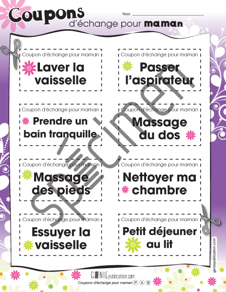 Petits coupons à découper et à donner à maman pour la fête des mères.