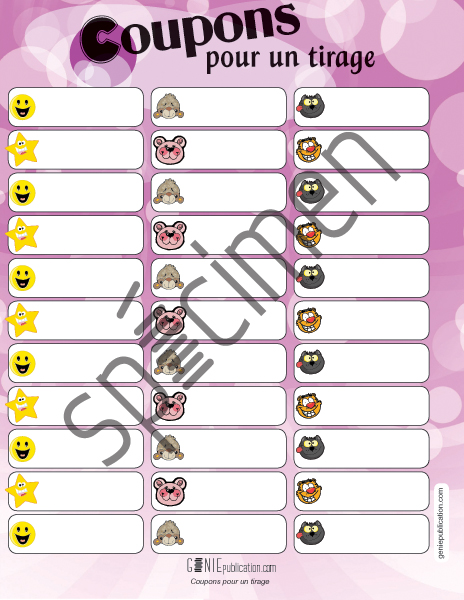 Cette fiche contient 33 coupons pouvant être découpés pour faire un tirage.