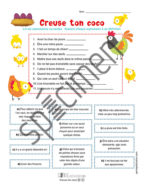L’élève doit lire les expressions sur le thème du printemps, puis associer chacune d’elles à la bonne définition.