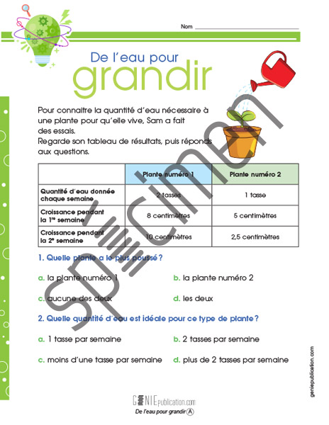 L’élève doit interpréter un tableau de données sur la croissance de deux plantes et répondre à des questions.