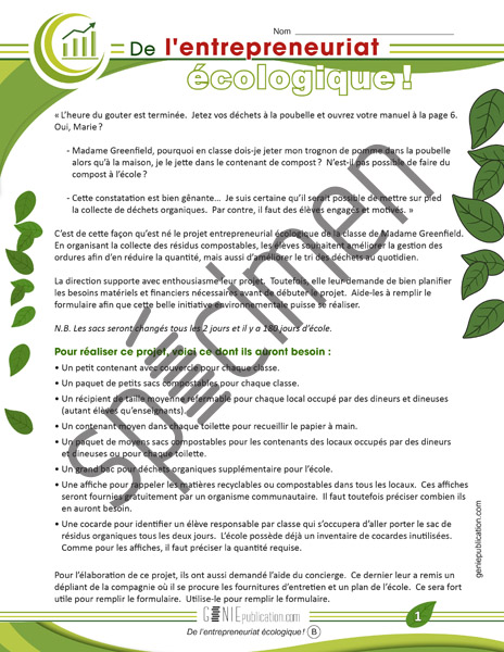 Situation-problème dans laquelle l'élève doit déterminer les couts pour offrir du compostage à l'école.