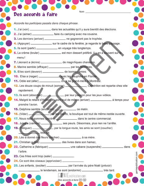 L’élève doit accorder correctement les différents participes passés employés avec l'auxiliaire avoir, avec l'auxiliaire être ou sans auxiliaire dans les phrases.