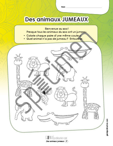 L'élève doit trouver lequel des animaux ne fait pas partie d'une paire.