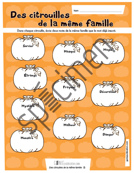 L'élève doit écrire deux mots de la même famille que les mots proposés.