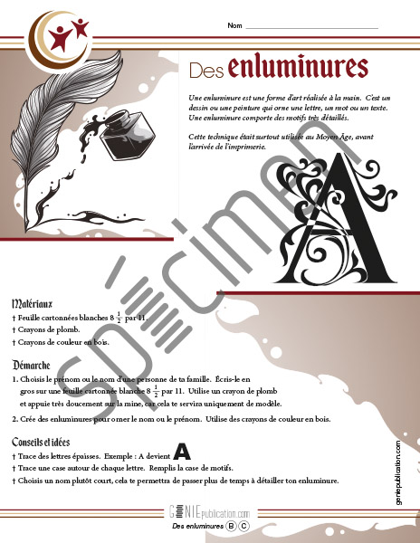 Activité dans laquelle l'élève fait des enluminures pour enjoliver les lettres d'un nom.