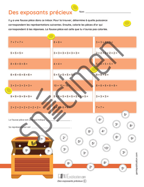 L’élève doit trouver à quelle puissance correspondent les représentations pour trouver l’intrus.