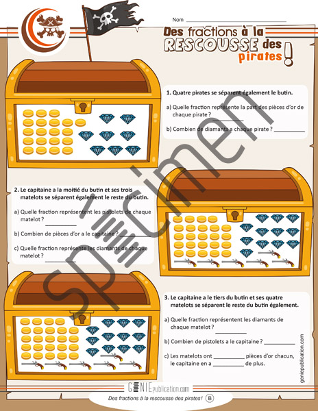 Activité sur les fractions avec le thème des pirates.