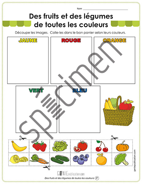 L'élève doit classer les fruits et les légumes selon leur couleur.