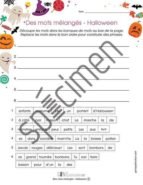 L’élève doit fabriquer des phrases en remettant les mots dans le bon ordre.